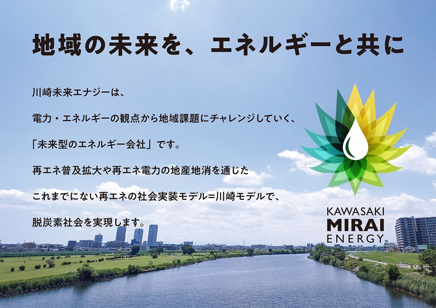 本ブースでは、川崎市が国内のトップランナーとして進めている、再生可能エネルギーの導入拡大に向けた、廃棄物発電を活用した「川崎産グリーン電力」や「スクール発電所」、建築物に太陽光発電設備の設置等を義務付ける「建築物への太陽光発電設備等導入制度」、再エネ導入や省エネに対する各種支援制度など、脱炭素社会の実現に向けた様々な取組を御紹介します。