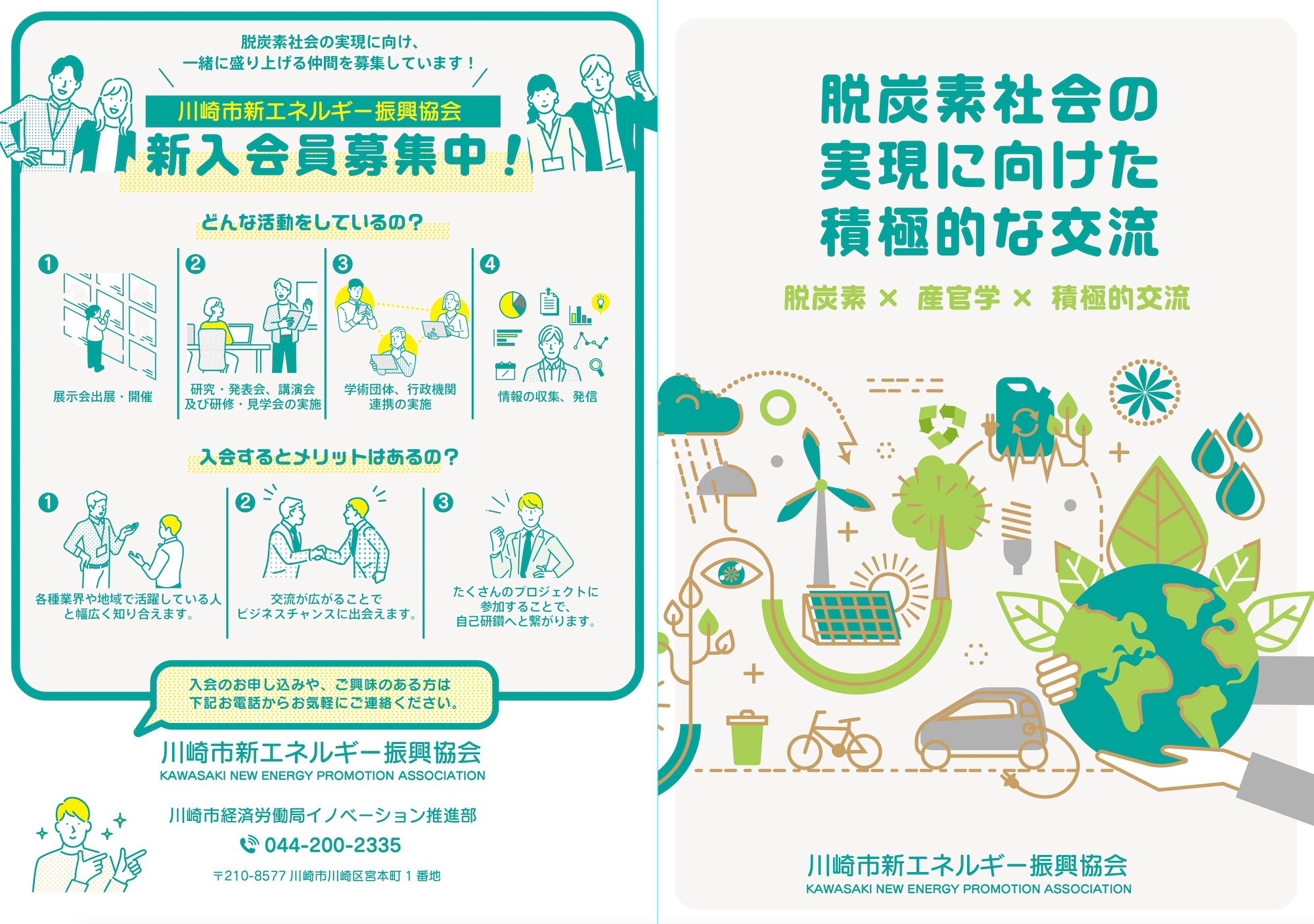 市内の地球温暖化防止活動および川崎市の脱炭素戦略「かわさきカーボンゼロチャレンジ2050」を推進する拠点として、JR武蔵溝ノ口駅前の高津市民館内において「川崎市地球温暖化防止活動推進センター」として活動しています。
