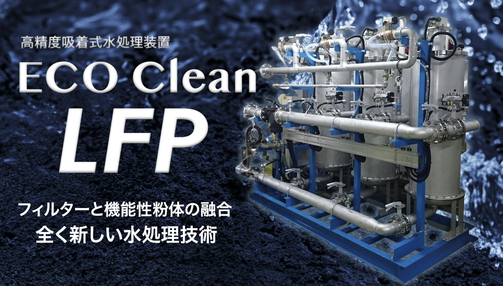 独自のLFP(リキッド・フィルター・パウダー)法は、機能性粉体と高精度フィルターを組み合わせることで高い吸着性能と精密ろ過を実現。その成果として開発した「ECOクリーンLFP」は、既に多方面で活用が進んでいます。