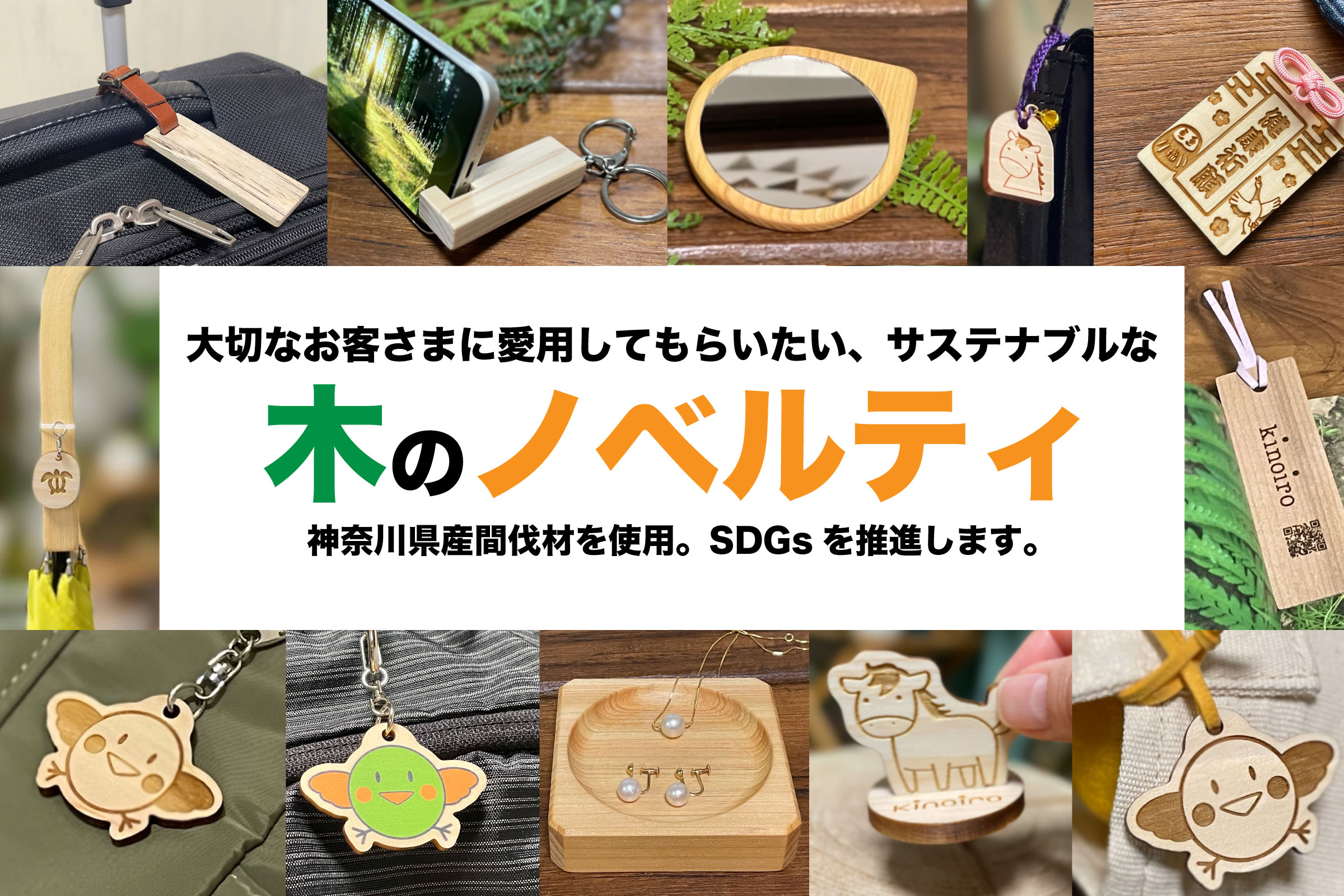 当社は間伐材や神奈川県産材、アップサイクル木材(再生木材)を用いたものづくりで、SDGsに取り組む企業様とOEM・ODMを通じて持続可能な社会に貢献しています。